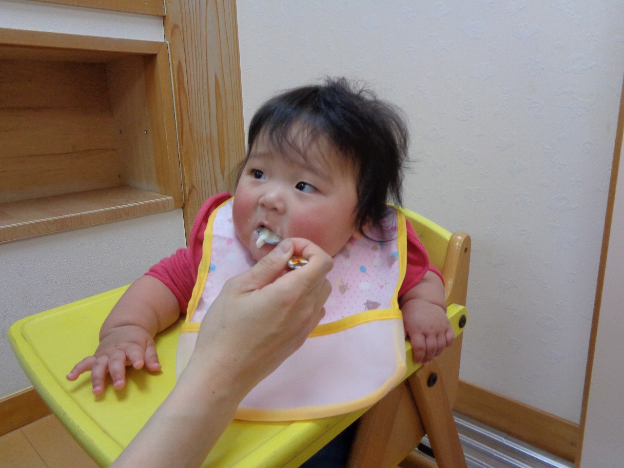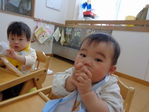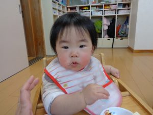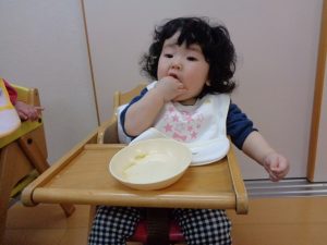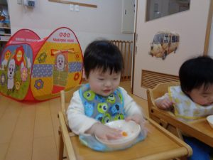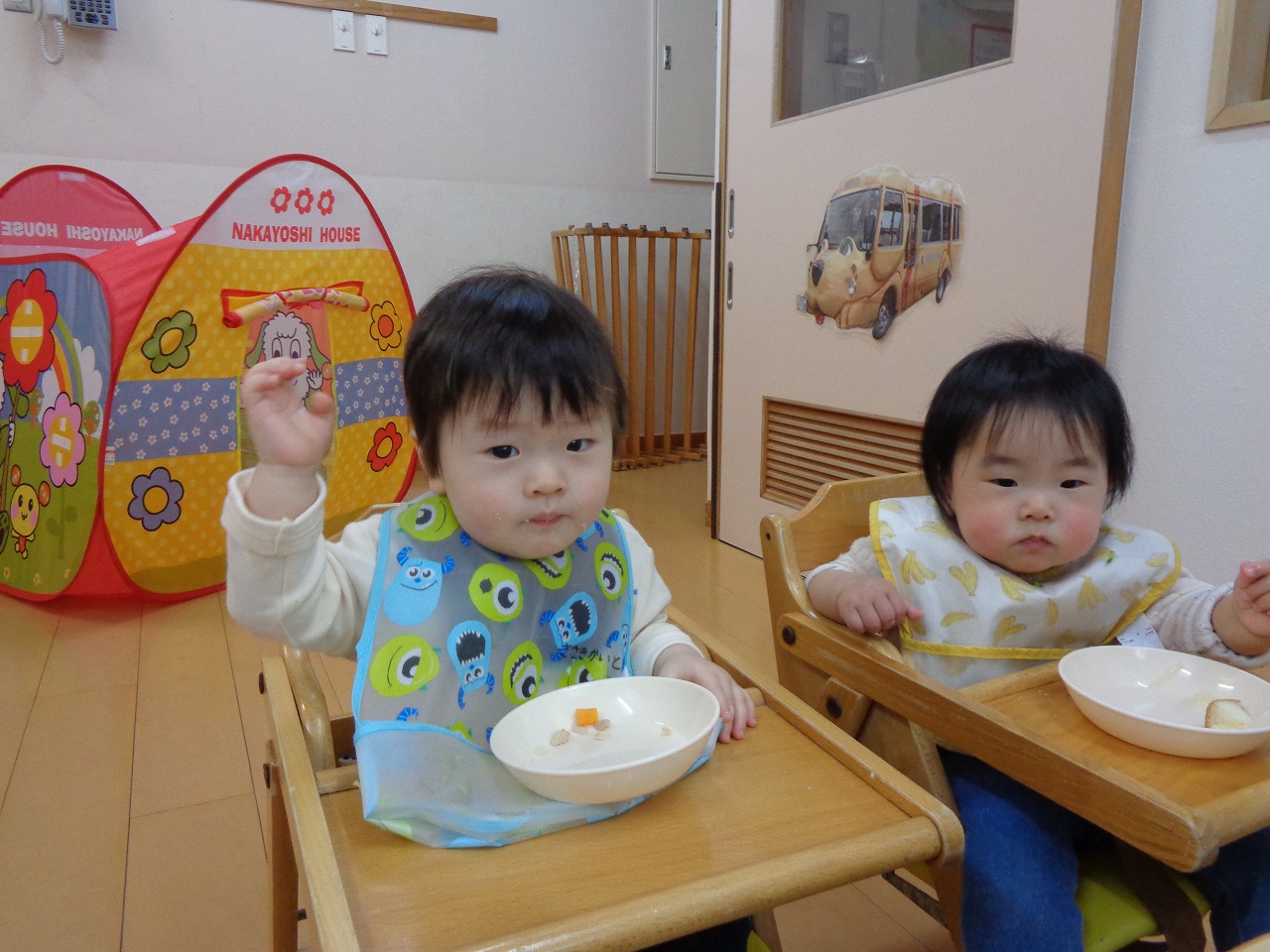 新しいお友だちは初めての給食保育園の給食はどうかな