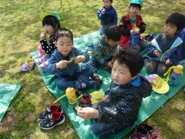 「お外でおやつ…なんだかいつもよりおいしいぞ」