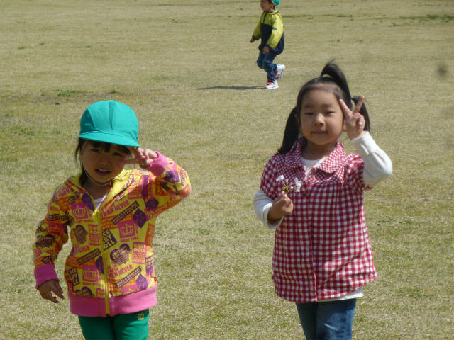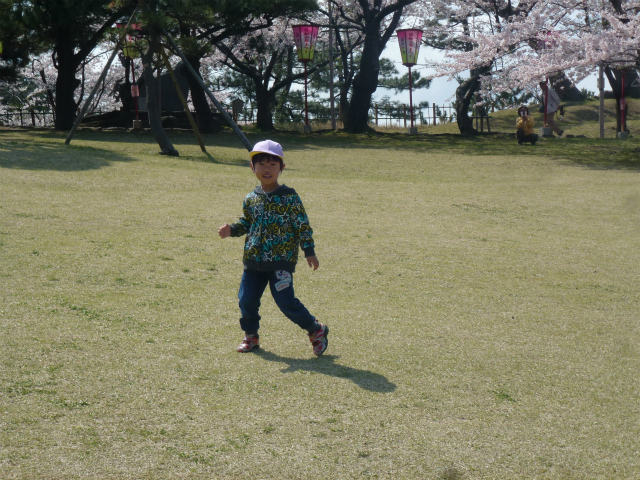 日和山公園に到着お友だちと手をつないで…レッツゴー「桜、きれいだね~」