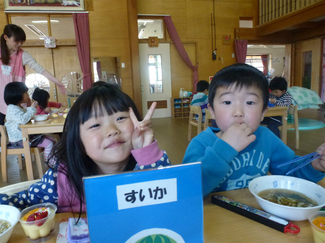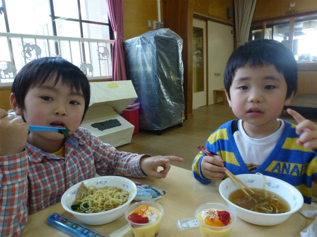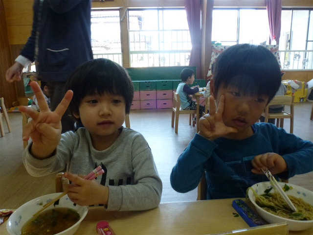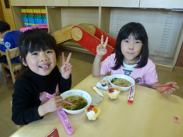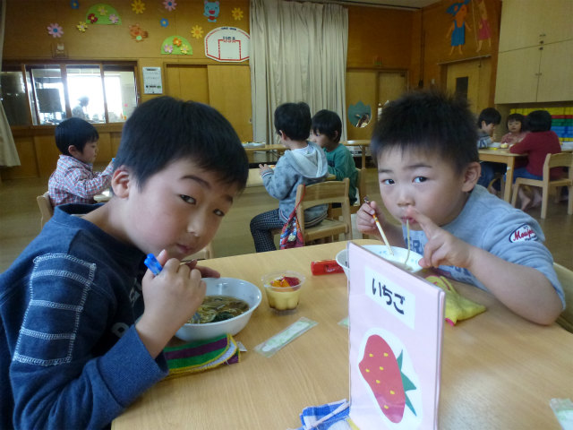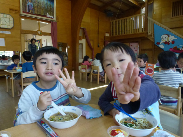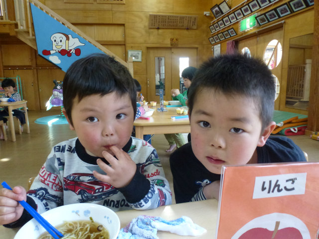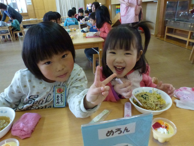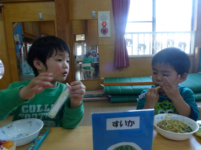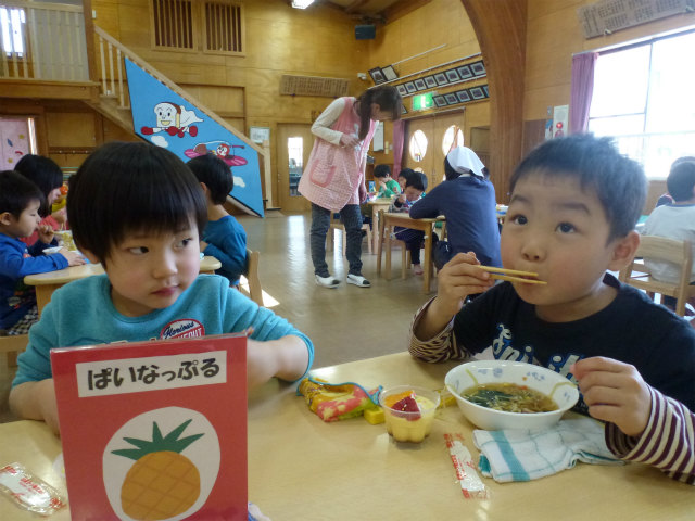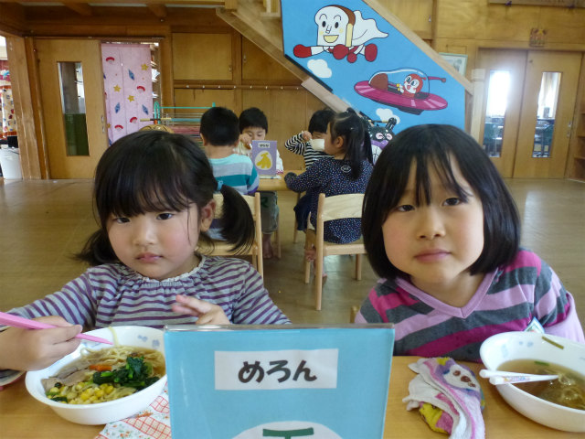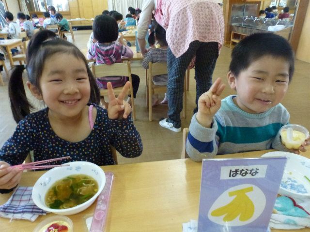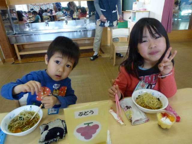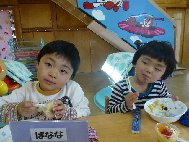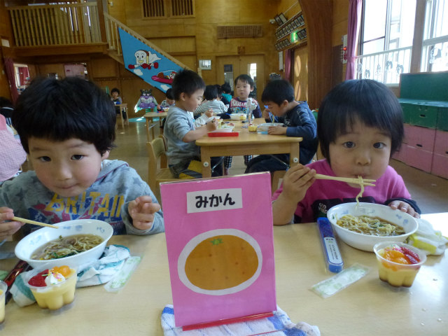 誕生会の日は以上児はホールで会食です