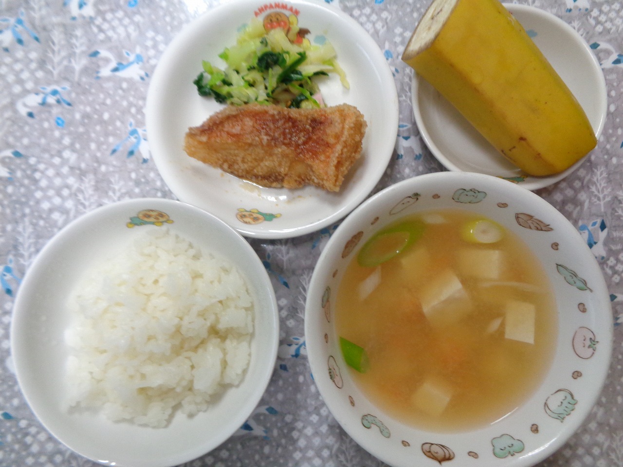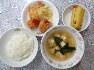 5日の給食は『ブリの香味揚げ・野菜の和え物・みそ汁・バナナ』でした。ブリの香味揚げは大人気でした