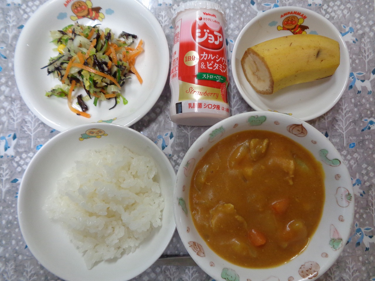 26日の給食は『ポークカレー・ひじきサラダ・ジョア・バナナ』でした🍛