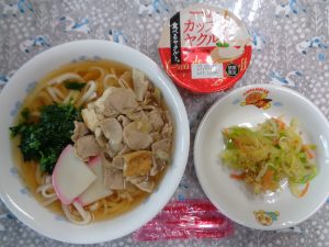 28日の給食は『年越しうどん・野菜の和え物・ヨーグルト』でした。お家でも年越しそばやうどんを食べて、細く長く暮らせるよう願いましょう