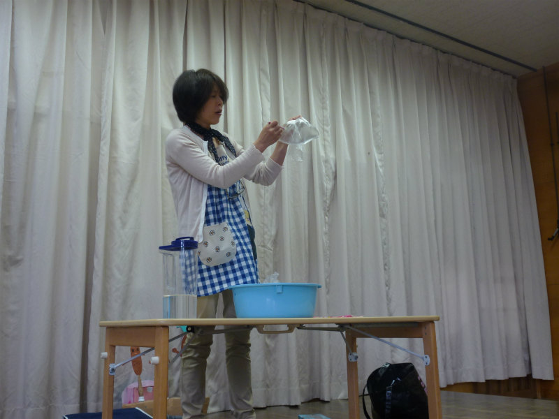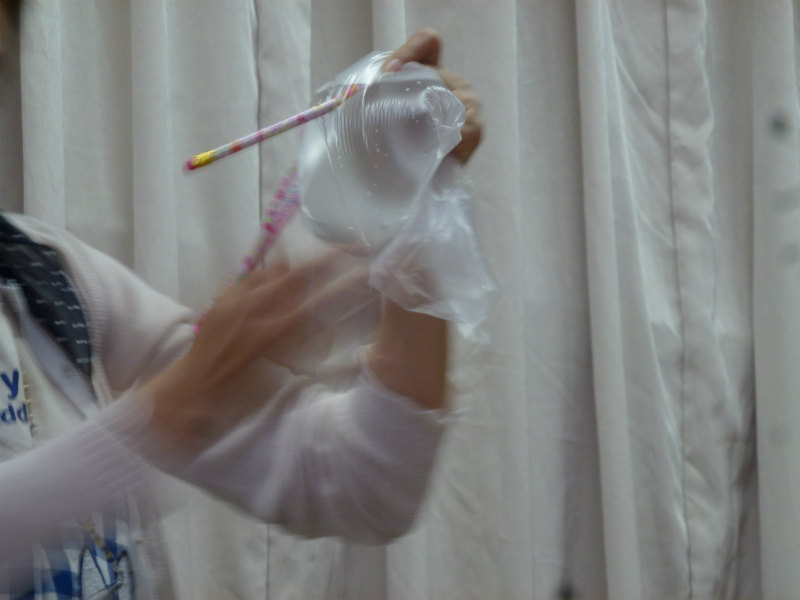 水を入れて穴をあけた袋に鉛筆を刺すと…