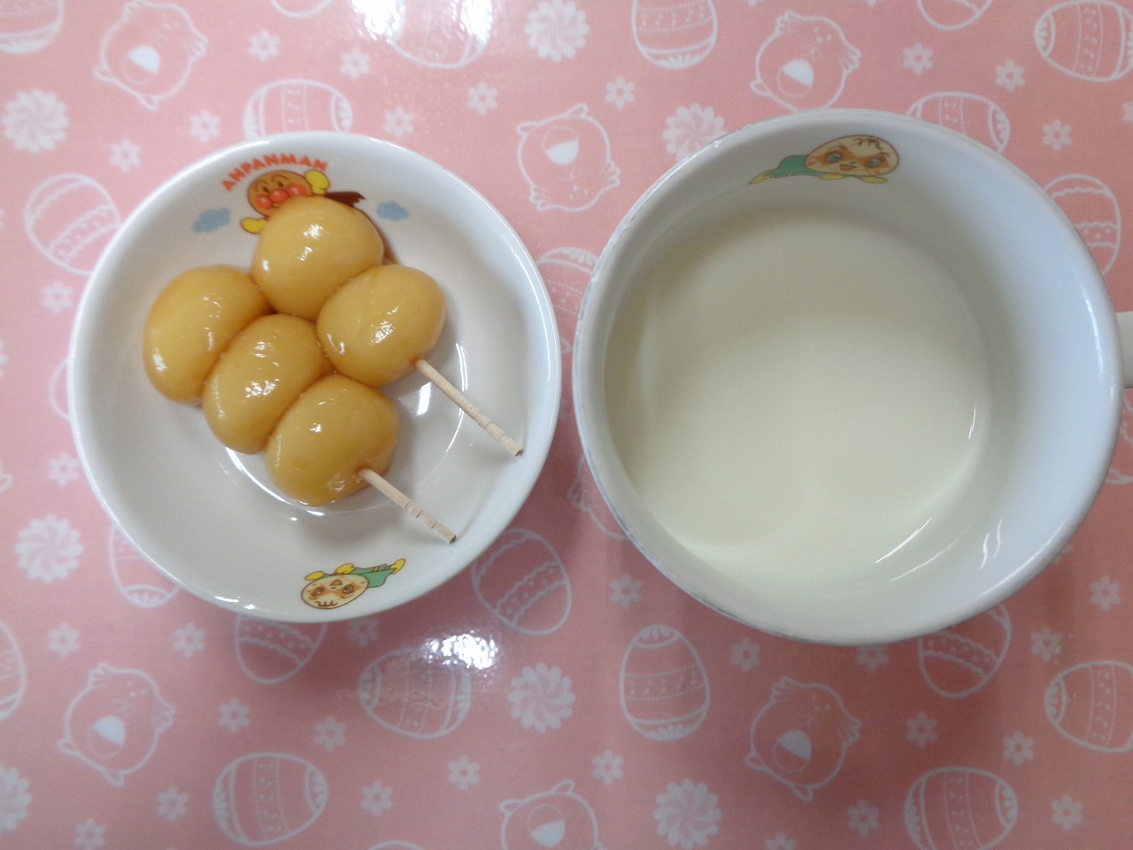 11日の給食は『焼肉丼風・ブロッコリーのおかか和え・春雨スープ・オレンジ』で、おやつは『お花見団子・牛乳』でした🍡 保育園の桜が満開なので、来週のお花見団子を先取りしました🌸 また最近の物価高の影響により、今回から牛乳はコップで提供することになりました🥛