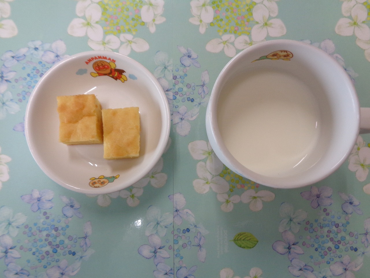 7日の給食は『焼き魚・切り干し大根サラダ・みそ汁・ジューシーフルーツ』で、おやつは『パインケーキ・牛乳』でした🍍