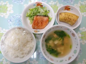 30日の給食は『焼き魚・ゆかり和え・みそ汁・バナナ』でした