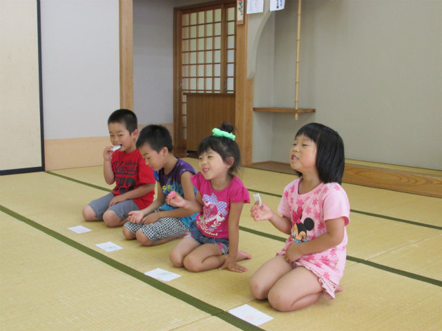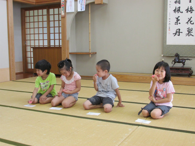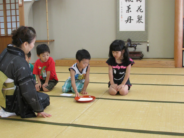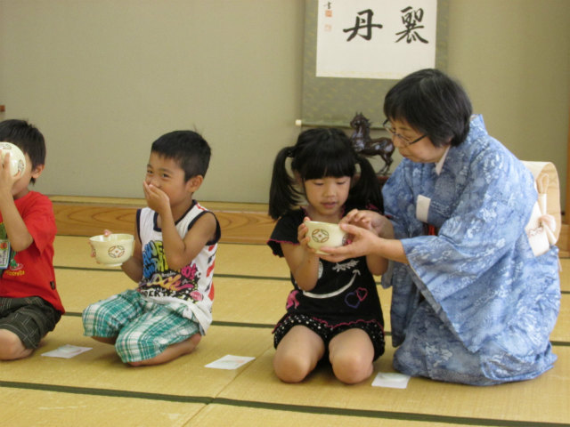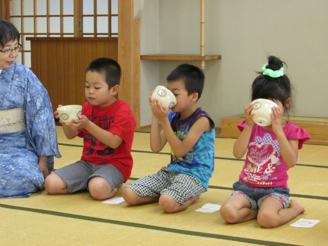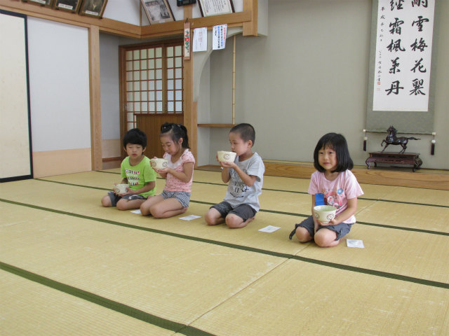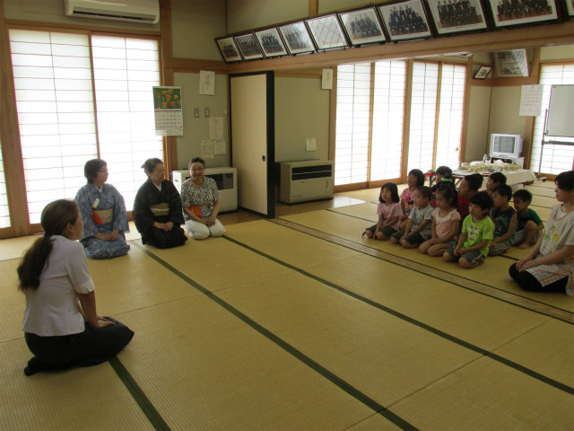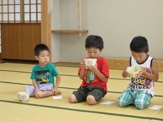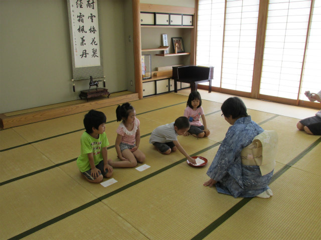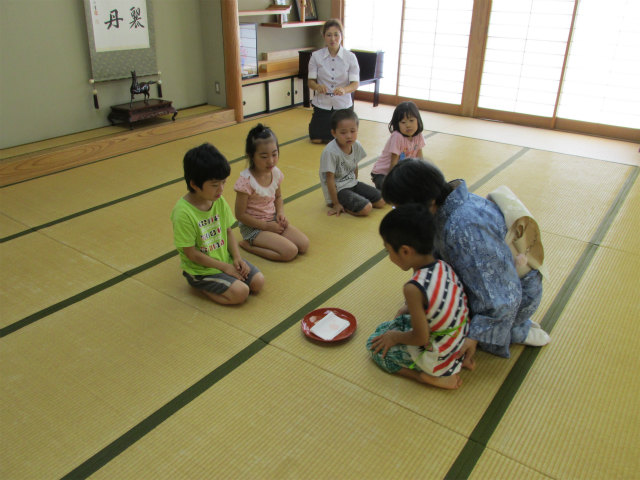 7月15日(火)、年長児が北平田コミュニティセンターで茶道教室に参加してきました