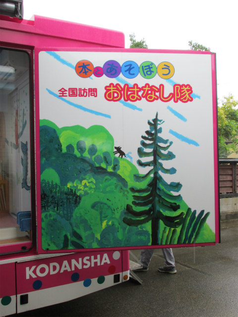 絵本をいっぱい積んだ大きなキャラバンカーに子ども達も大興奮kya-.gifbikkuri03.gif