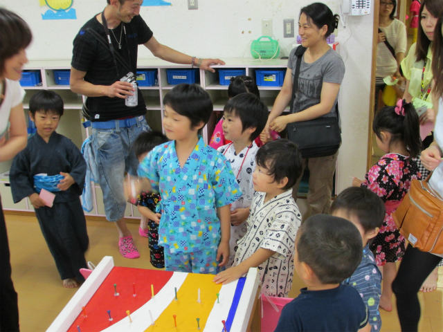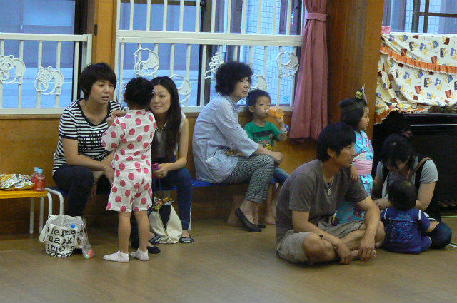 いつもはお家で夜ご飯を食べ始める時間帯に、子ども達はお家の人たちと一緒に保育園に集まってきました
