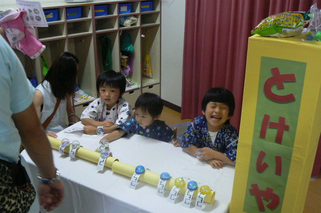 子ども達は受付で購入した券を片手に、各場所に行って楽しんでいました