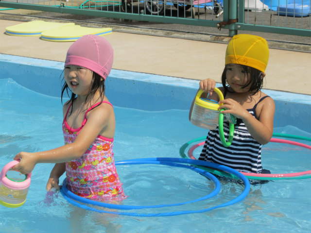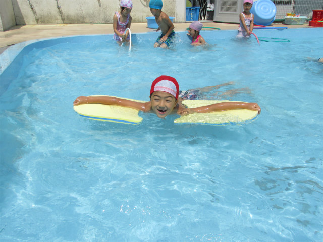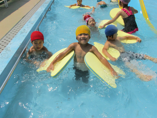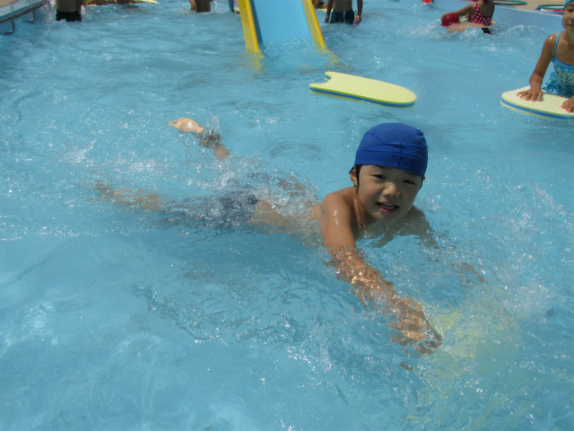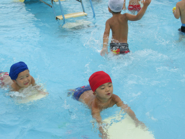以上児(特に年長さん)は「水に顔をつけられるようになるbikkuri03.gif」「ビート版を使って泳げるようになるbikkuri04.gif」「バタ足ができるようになるbikkuri02.gif」などと、一人ひとりの目標を持って取り組めるといいですねwing.gif