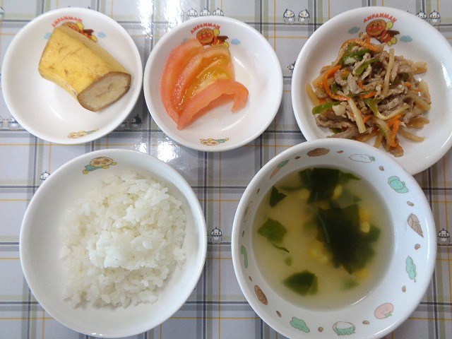 7日の給食は『チンジャオロース・トマト・春雨スープ・バナナ・ラフランス』でした🍐