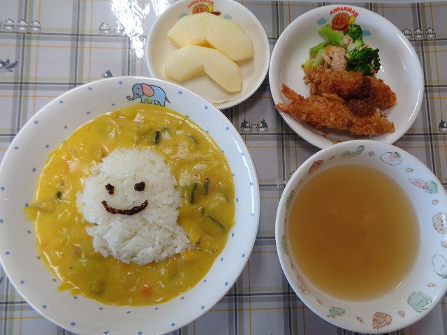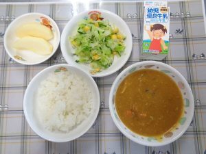 25日の給食は『秋のカレー・コールスロー・牛乳・りんご』でした🍛
