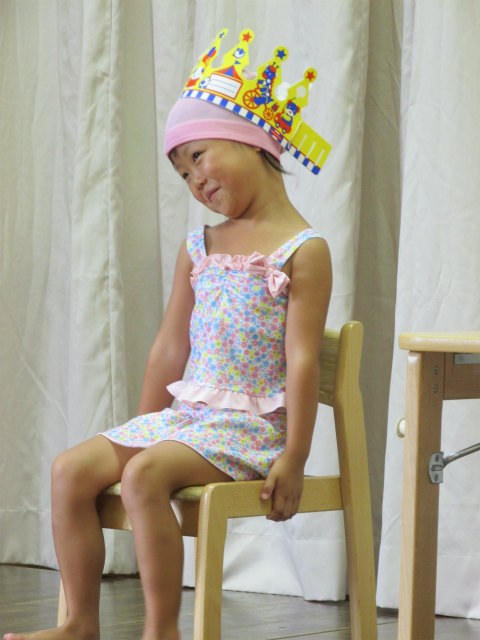 誕生会係に名前を呼んでもらった誕生日のお友だちは、冠を被せてもらいますkao-a18.gifheart09.gif
