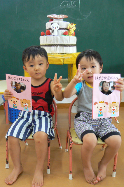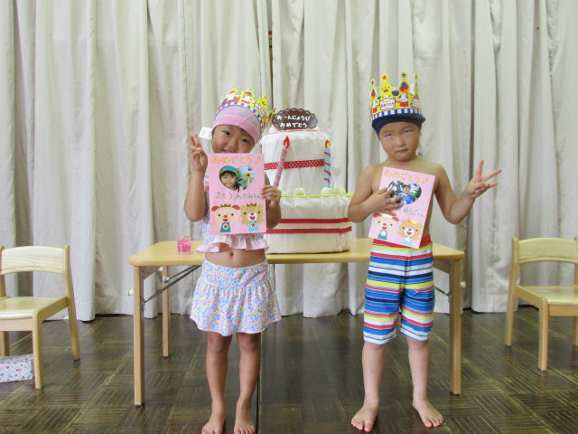 8月20日(水)、8月生まれのお友だちの誕生会を行ないましたcake.gifheart09.gif