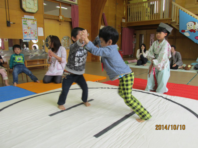 すもうごっこを通して、ルールを守りながら体を動かす楽しさを感じ、また、礼儀や国技を学んだ子ども達でしたkira01.gif