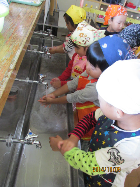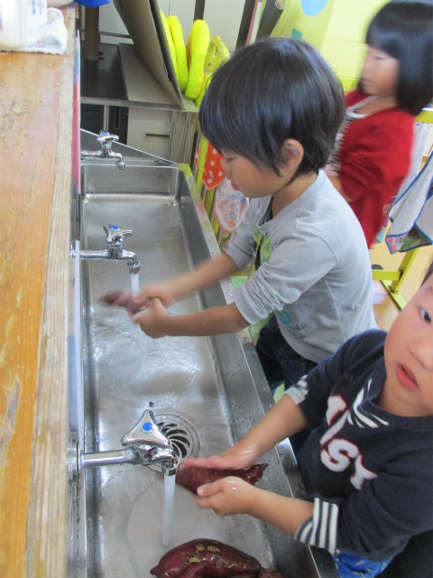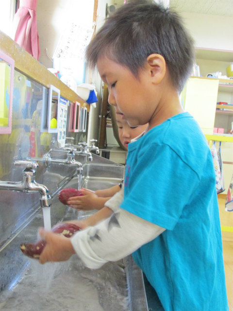 まずはじめに、朝登園した子からさつまいもを洗いますf01.gif