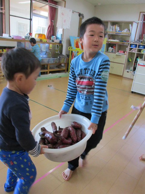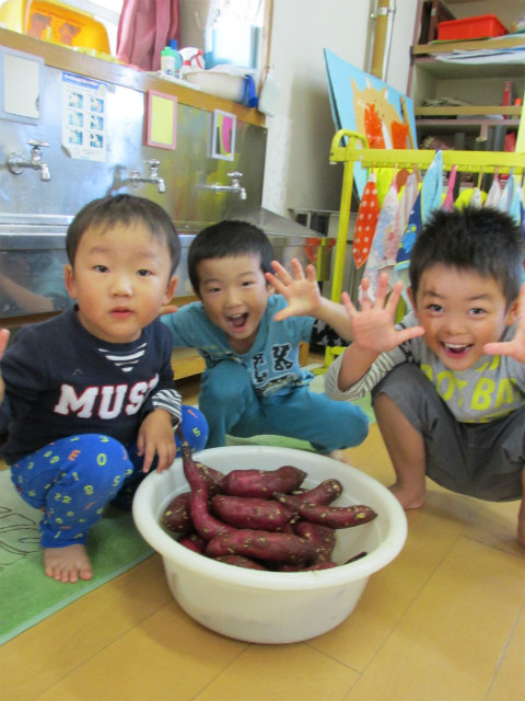 5月に保育園の畑に植えたさつまいもを使って、いも煮を作りましたfutaba.gif