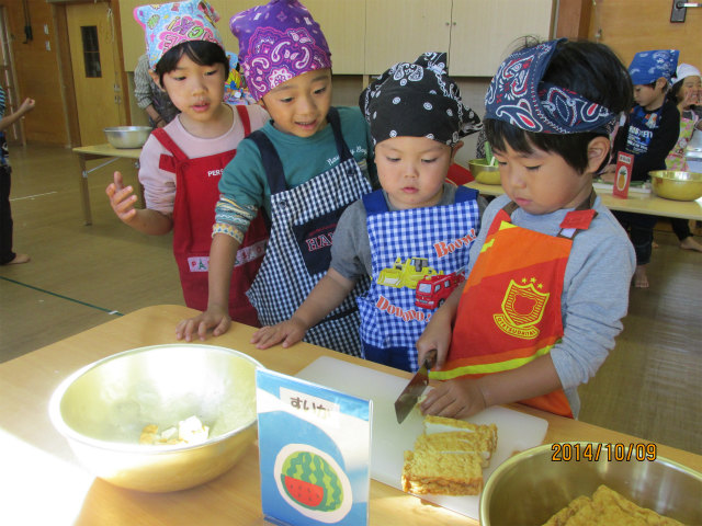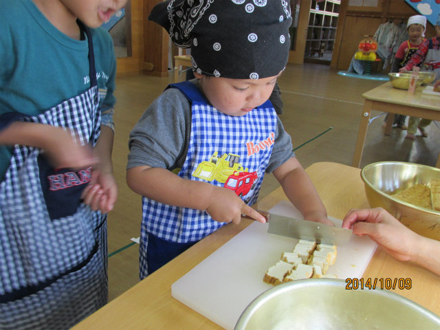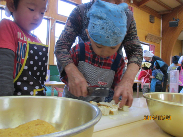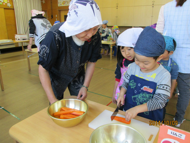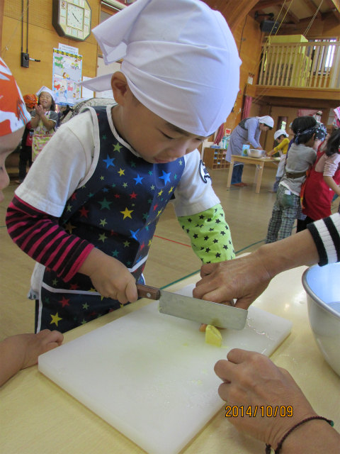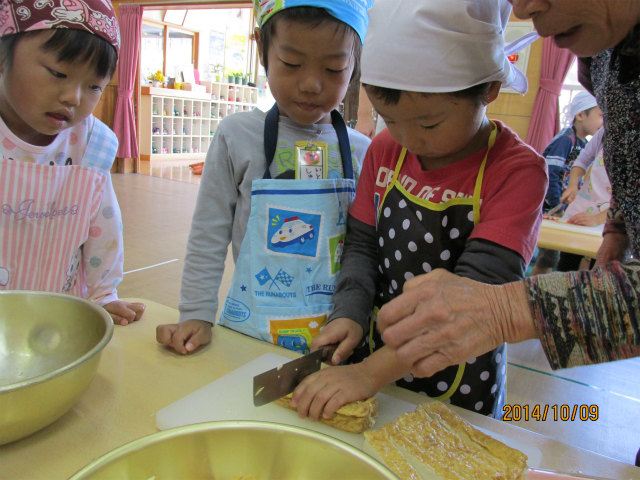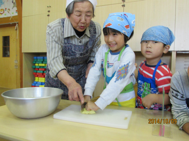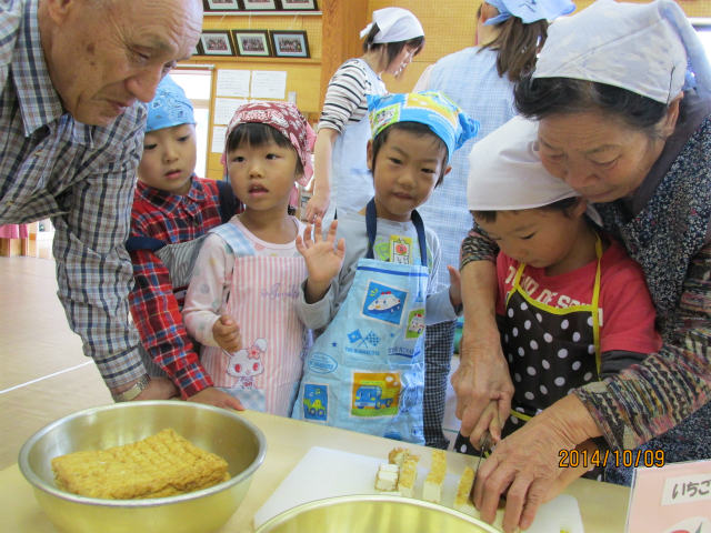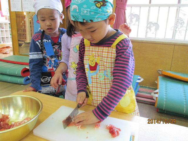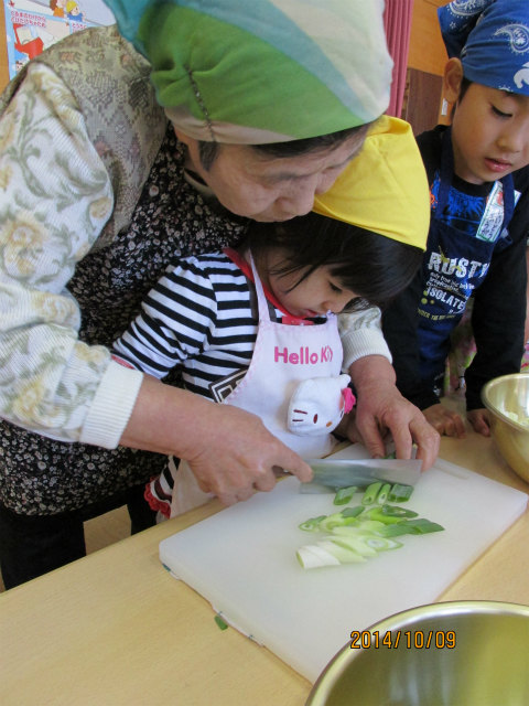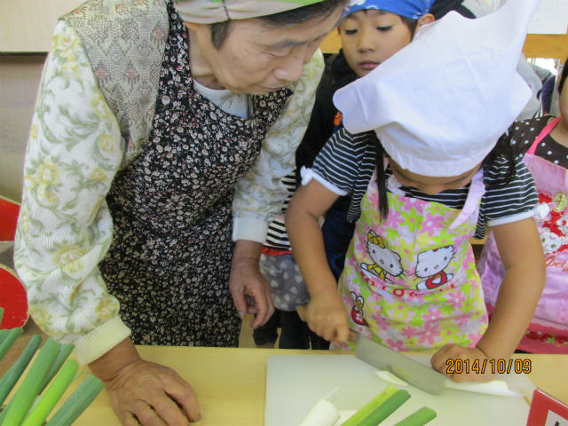 さつまいも、油揚げ、お肉等の切り方をしっかりと聞きますkira01.gif