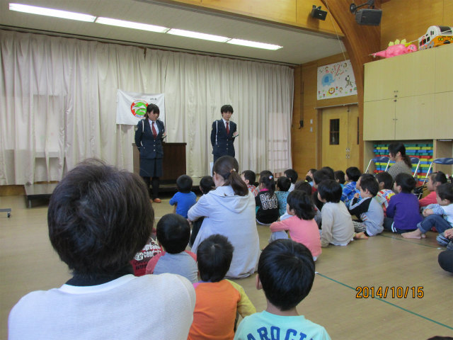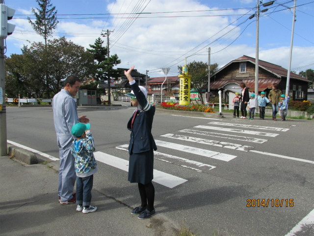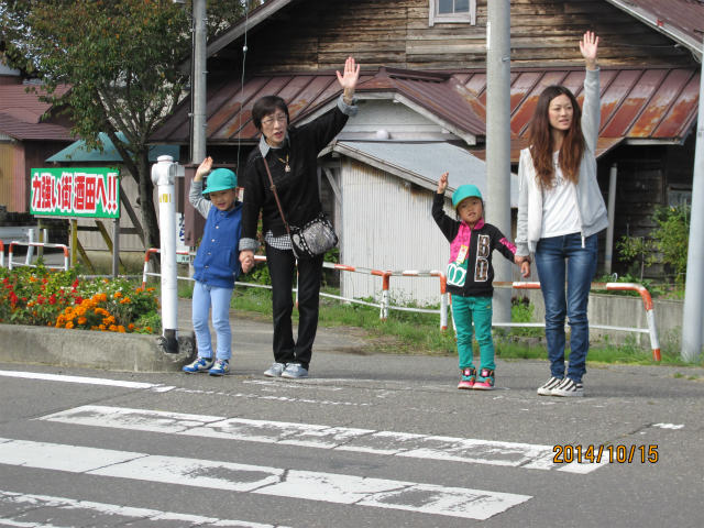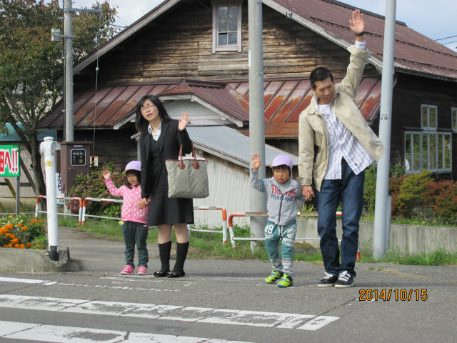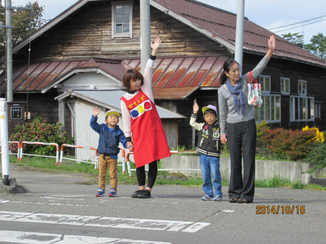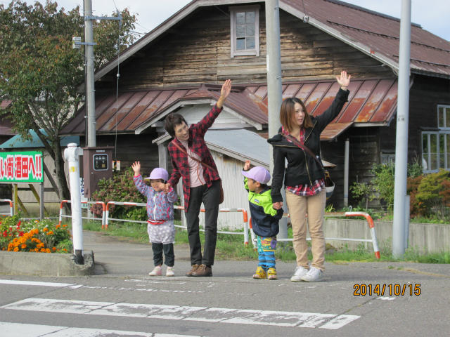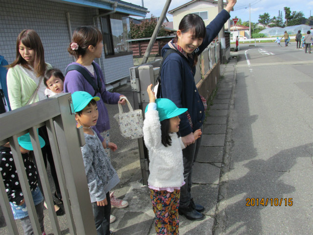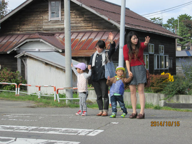 ゆり組さん、ばら組さんがお家の人と一緒に交通のルールを確認し、ストップの約束をしながら保育園の周辺を歩き回りましたよkao-a01.gifup.gif