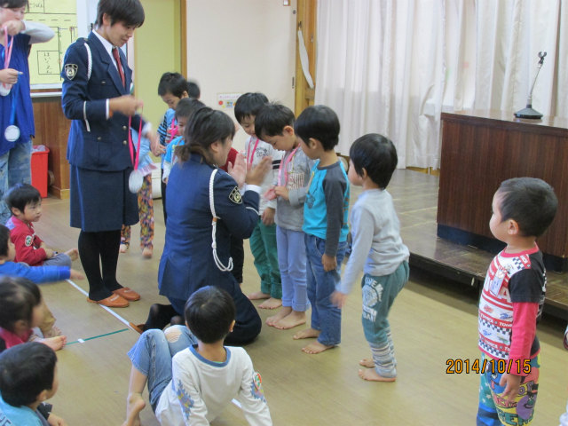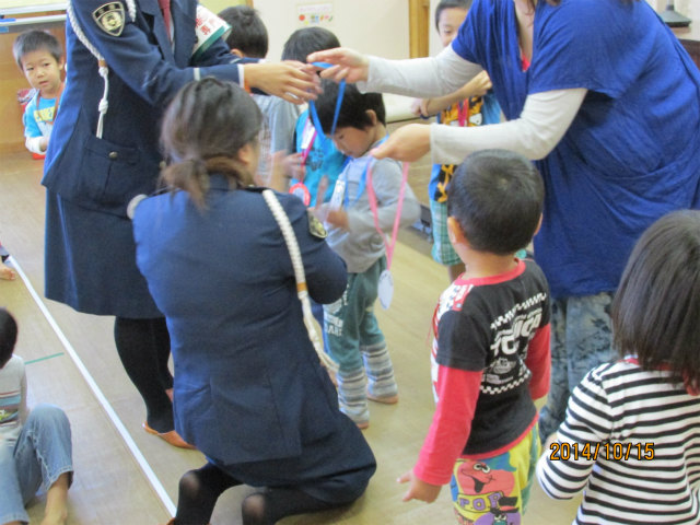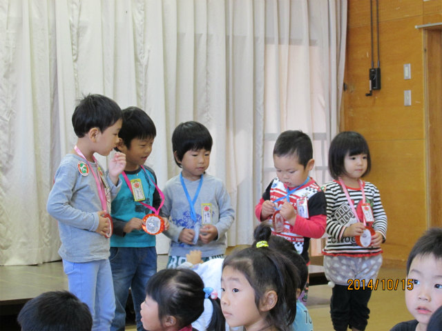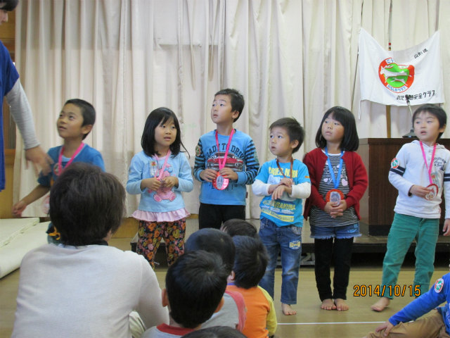 大きな声でストップの約束ができたお友だちに、指導員さんからメダルを貰いましたstar.gif