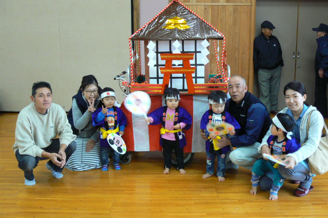 0・1歳児は親子でおみこし担ぎ、2~3歳児はゆうぎを踊ります