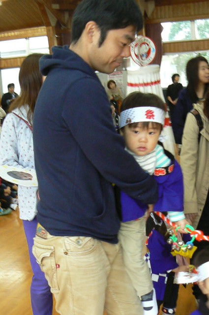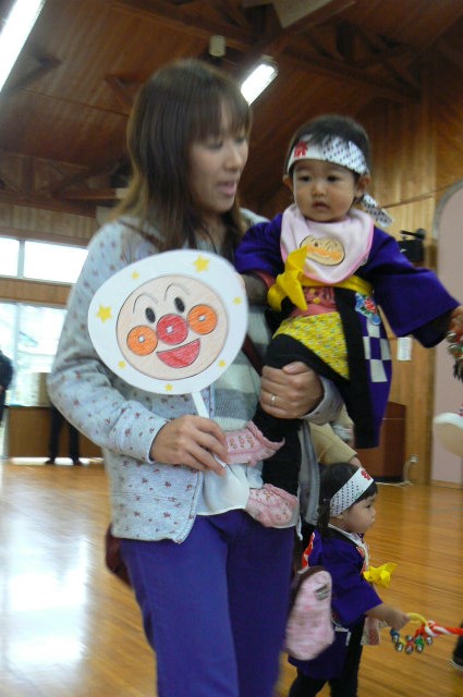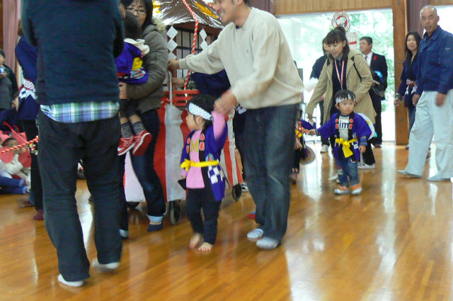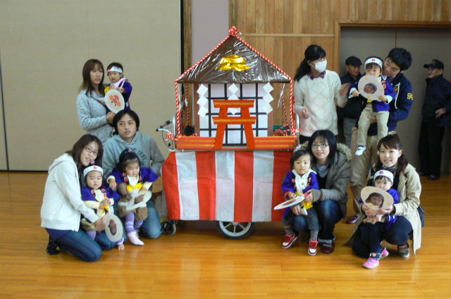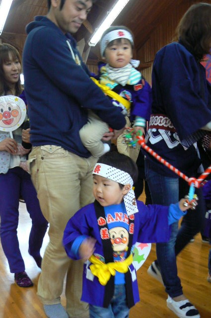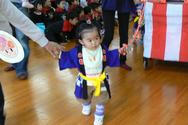 最初に0・1歳児のおみこし担ぎです