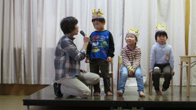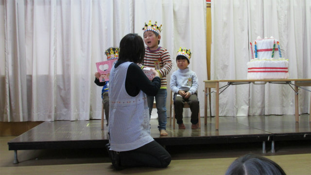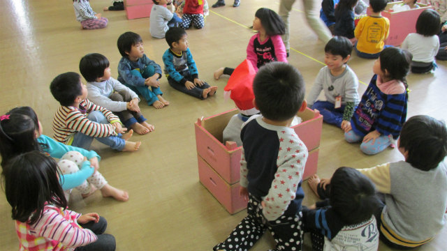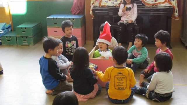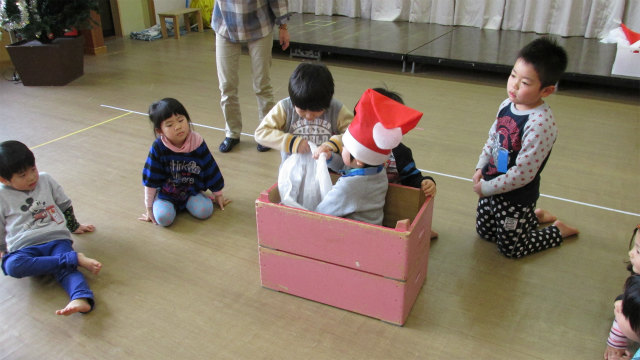 プレゼントの箱を回して、笛が鳴った時にその箱を持っていたお友だちはサンタさんからプレゼントが貰えます