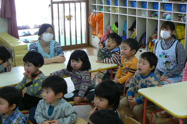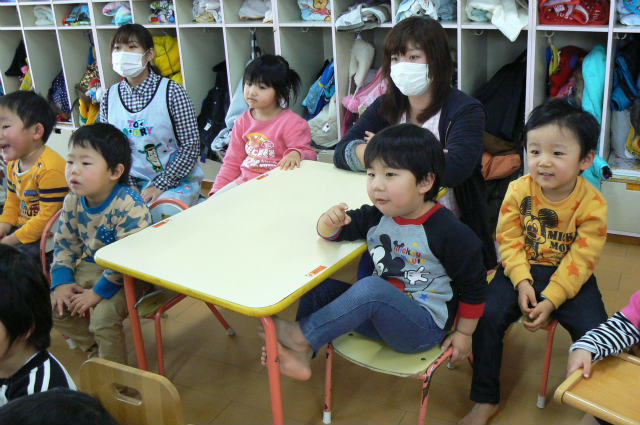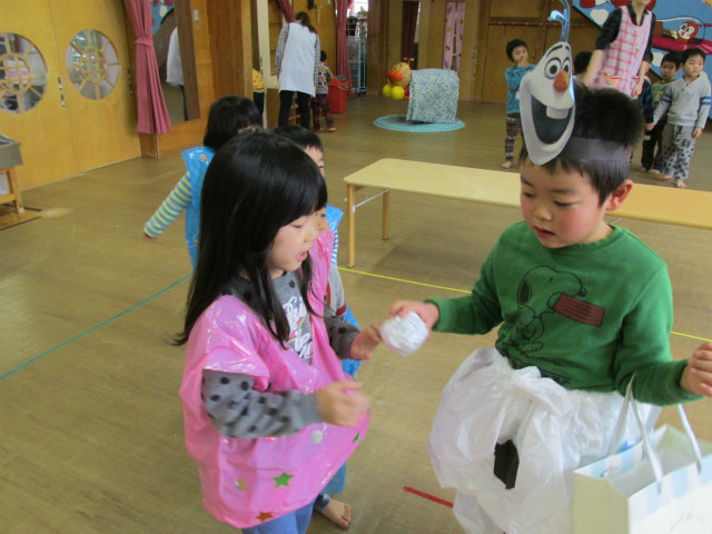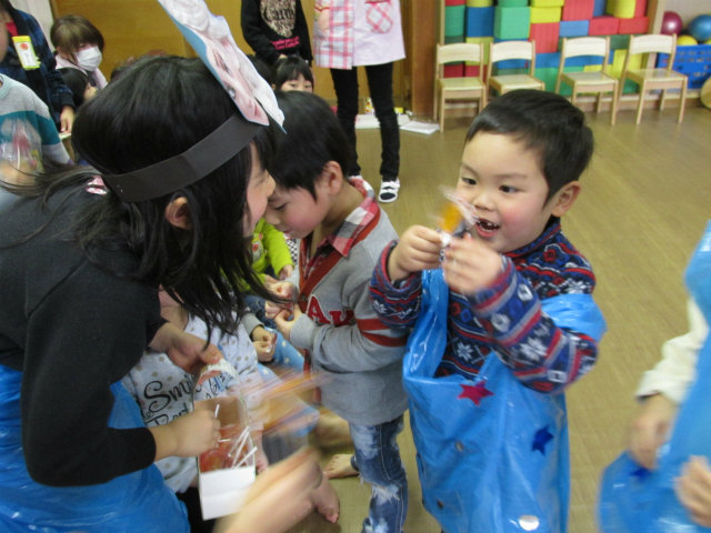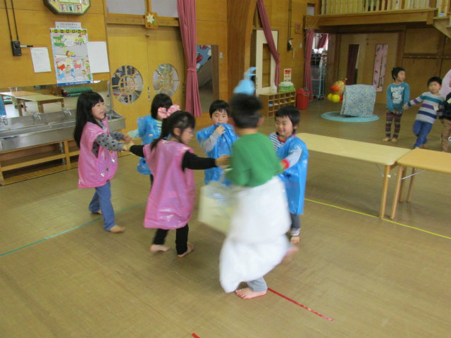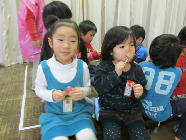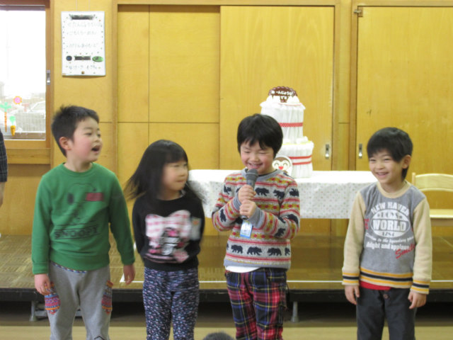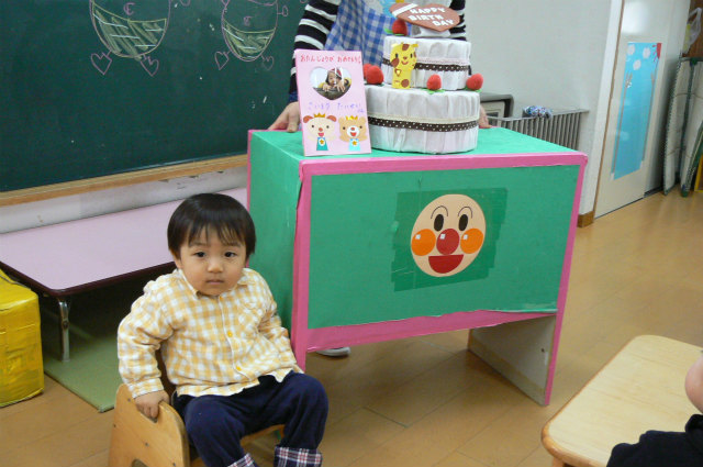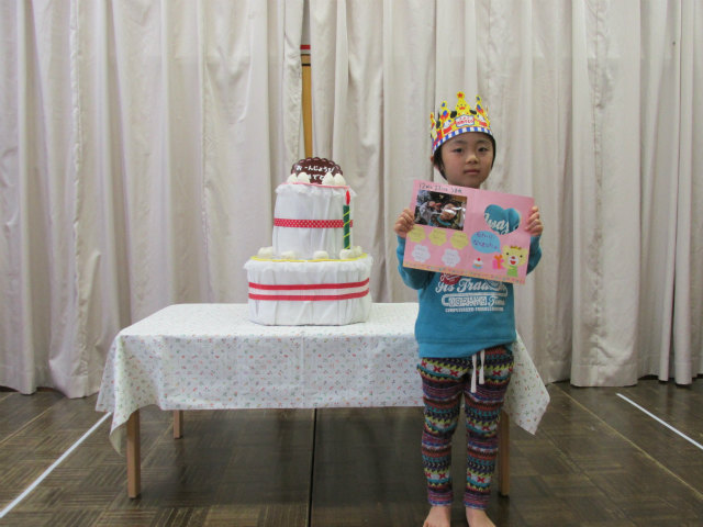今回は12月生まれのお友だちで、12月の誕生会の日に欠席してしまったお友だちをお祝いします