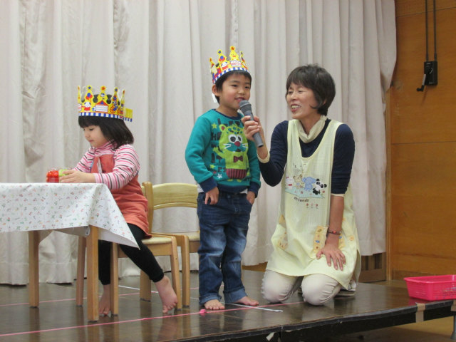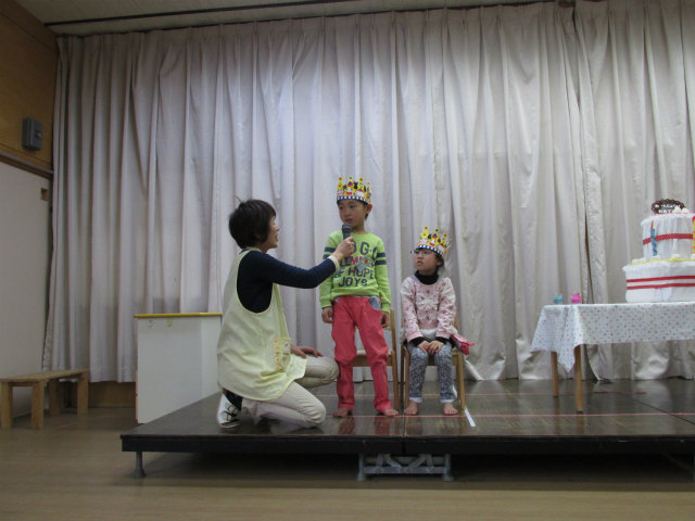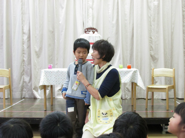 一方、以上児の誕生会は…年中さんのはじめの挨拶から始まります「これから3月生まれの誕生会を始めます」