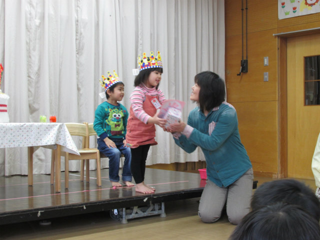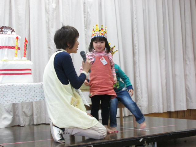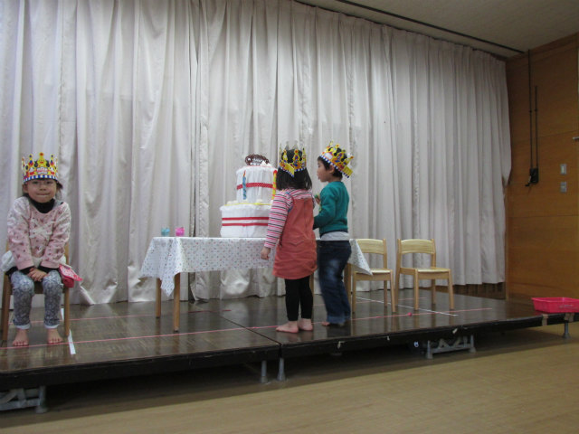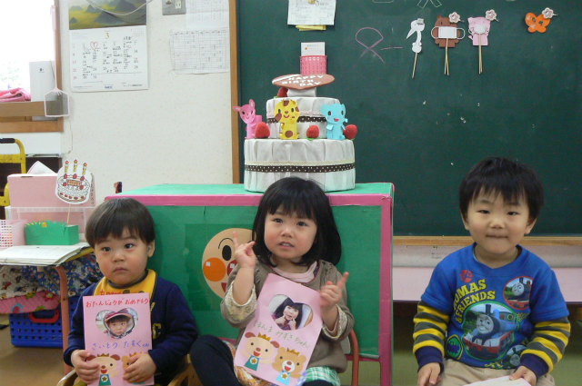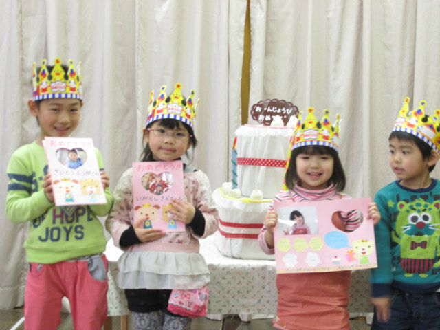 3月生まれのお友だちは、4月からず~っと自分の誕生会が来るのを今か今かと待っていましたみんなにお祝いしてもらって、満面の笑みでしたよ