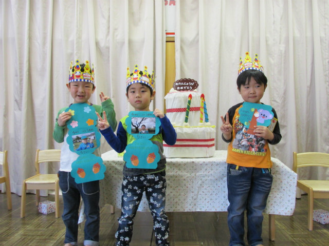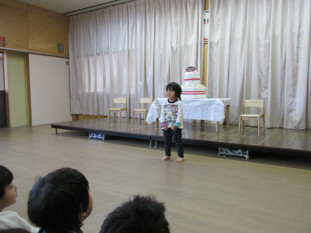年少さんは以上児になって初めての誕生会でドキドキワクワクの様子