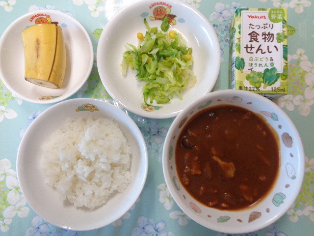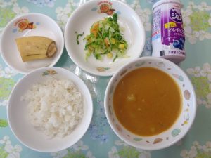 3日の給食は『チキンカレー・コーンサラダ・ジョア・バナナ』でした