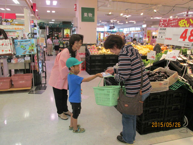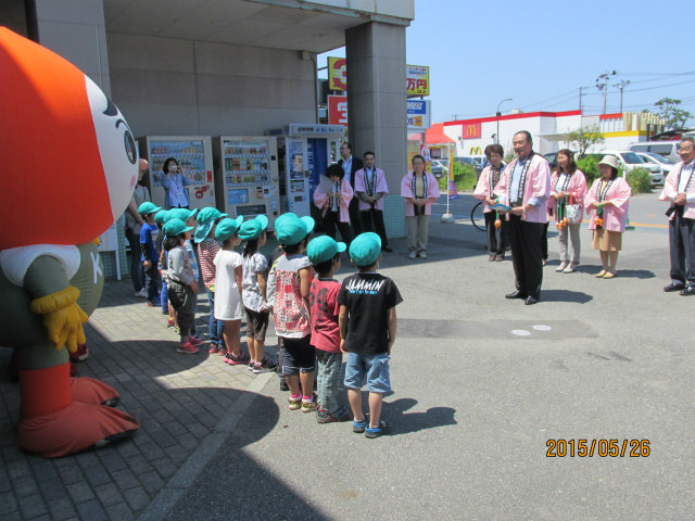 5月26日(火)年長児が一日人権擁護委員になってイオン酒田南店でパンフレットの配布を行なってきましたenpitu02.gif