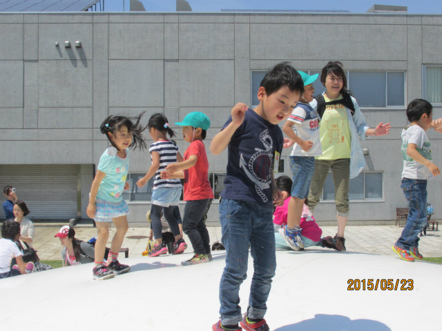 5月23日(土)親子遠足がありましたお家の人と一緒に、大型バスに乗って出発今年は秋田県のフェライト子ども科学館へ行きました