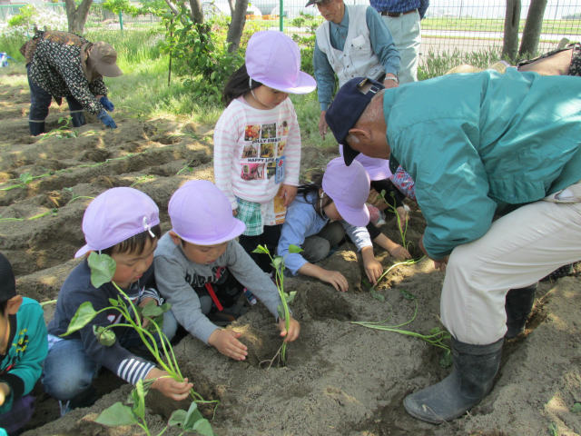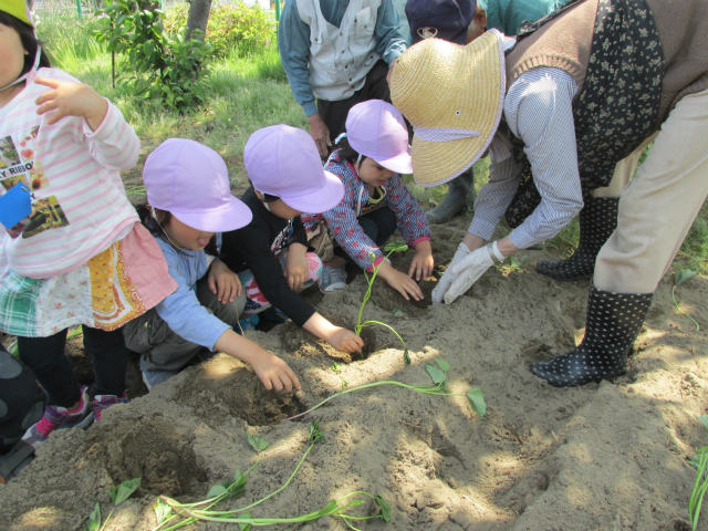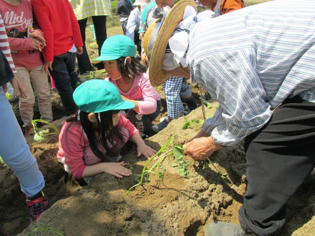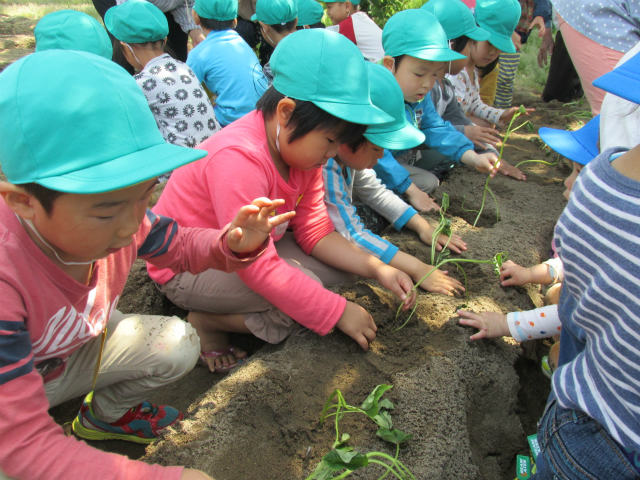 秋になったら大きく育ったさつまいもを使って老人クラブの方々と芋煮会を行ないますそれまでみんなで面倒をみるぞ