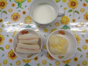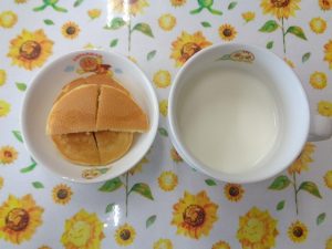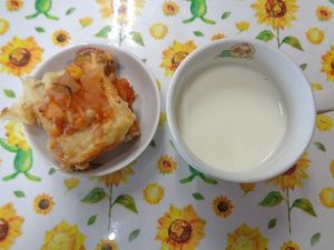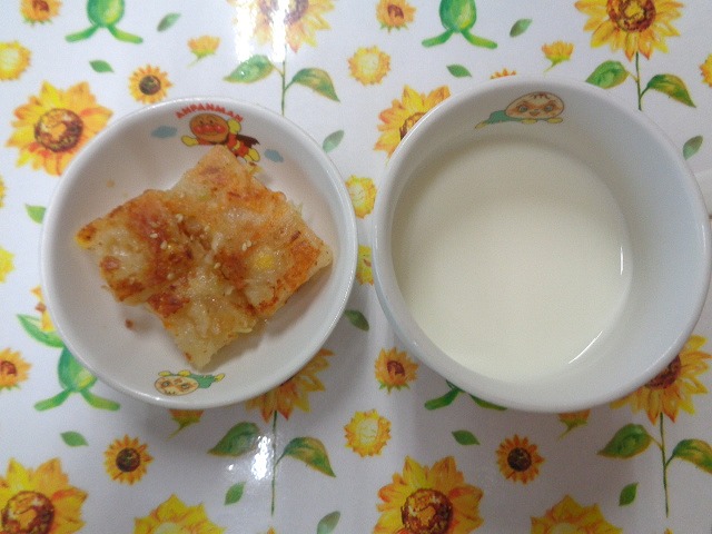 おやつは『コーンチヂミ・牛乳』でした🍌