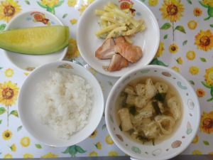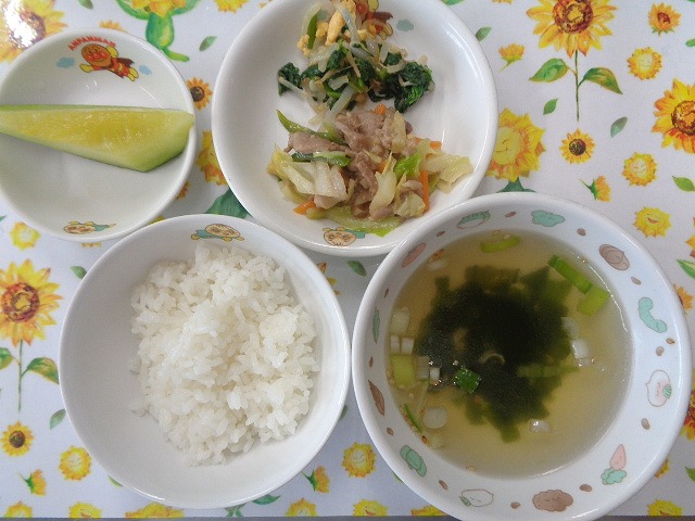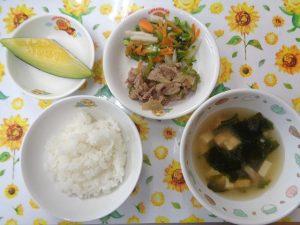 11日の給食は『回鍋肉・卵入りナムル・中華スープ・メロン』でした🍈