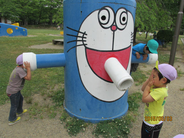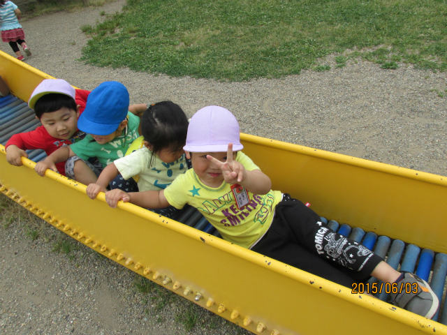 6月3日(水)、みんなでわんわんバスに乗って八幡公園に行ってきましたいろんな遊具にみんな大ハッスル