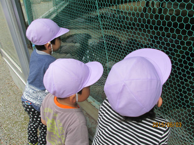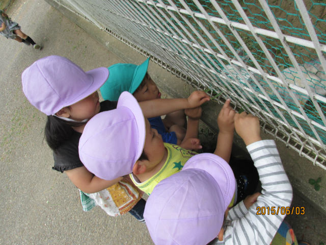 公園には動物もいて、みんな興味津々