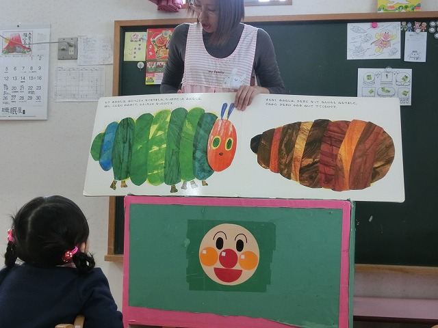 「はらぺこあおむし」の大型絵本も楽しみましたよfutaba.gif