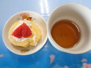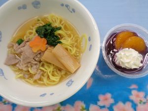 6日の給食は『五目ラーメン・ゼリーアラモード』で、おやつは『フルーツヨーグルトロール・麦茶』でした🎉🎉