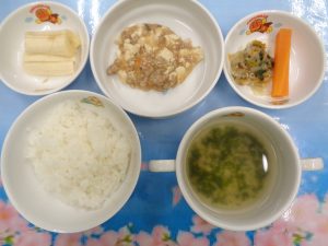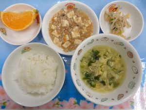 28日の給食は『麻婆豆腐・もやしのナムル・中華スープ・デコポン』でした