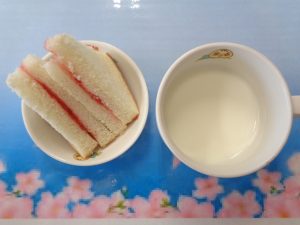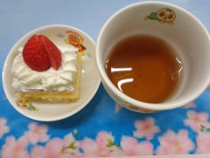 16日の『しょうゆラーメン・ゼリーアラモード』で、おやつは『ショートケーキ・麦茶』でした🍓