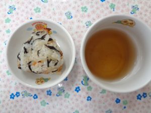 おやつは『ひじきおにぎり・麦茶』でしたおにぎり