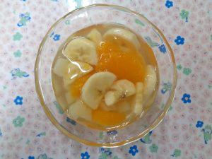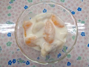 おやつは『フルーツヨーグルト』でした🍊🍌🍑🍍