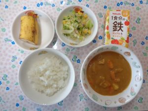 20日の給食は『ポークカレー・ツナサラダ・野菜ジュース・バナナ』で、
