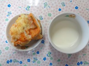 おやつは『チーズ蒸しパン・牛乳』でした🧀