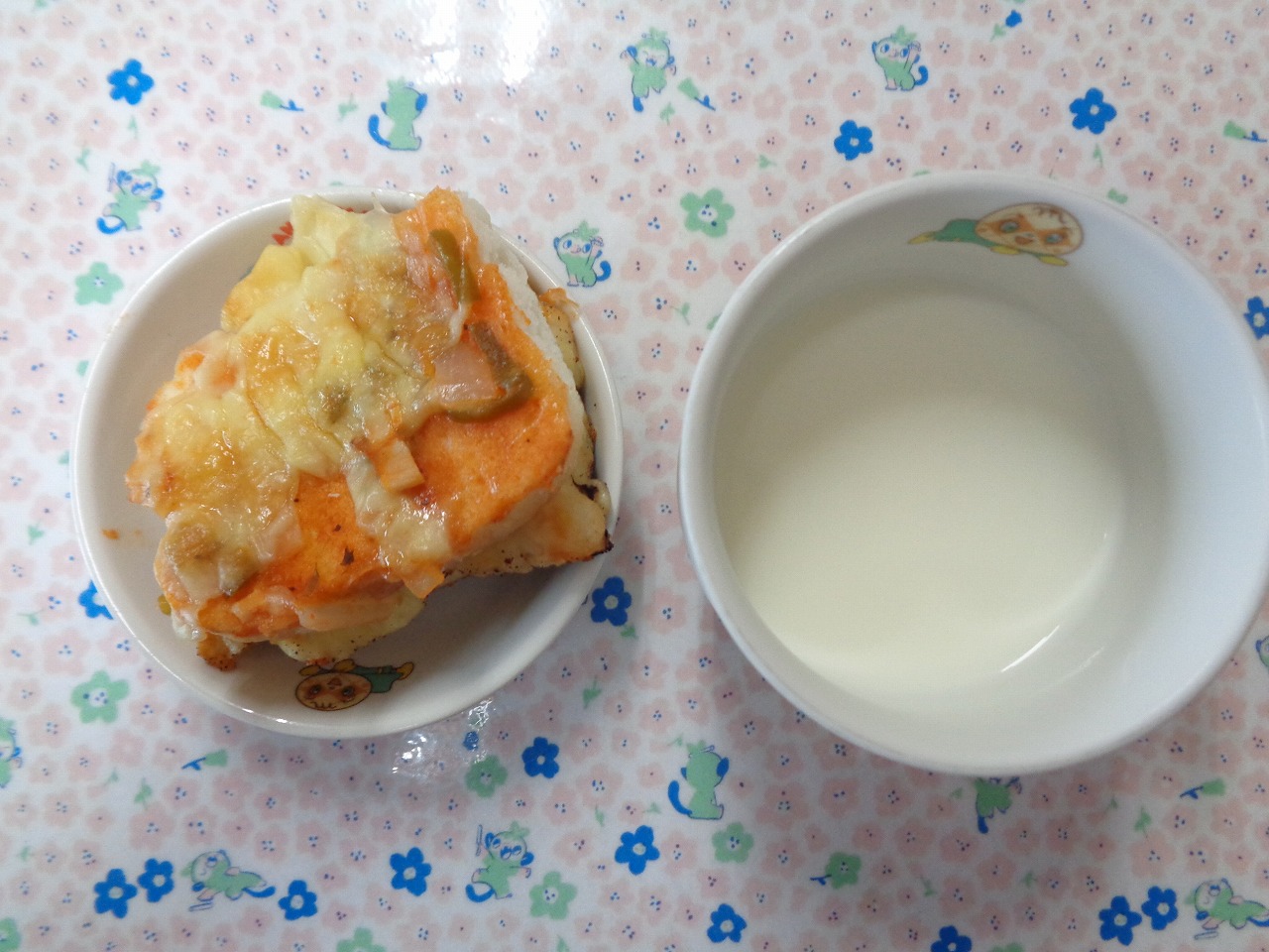 おやつは『米粉パンのピザトースト・牛乳』でした🍕